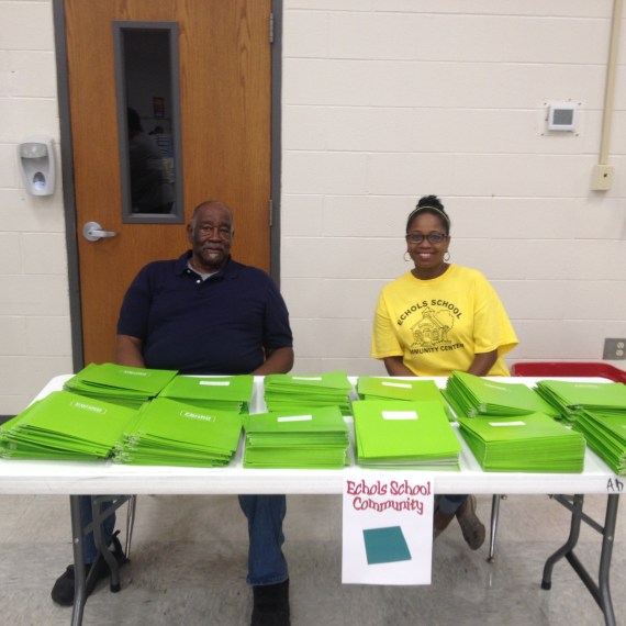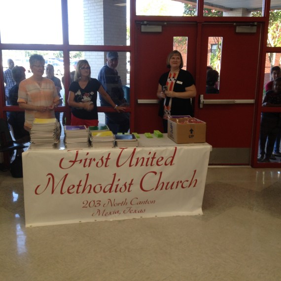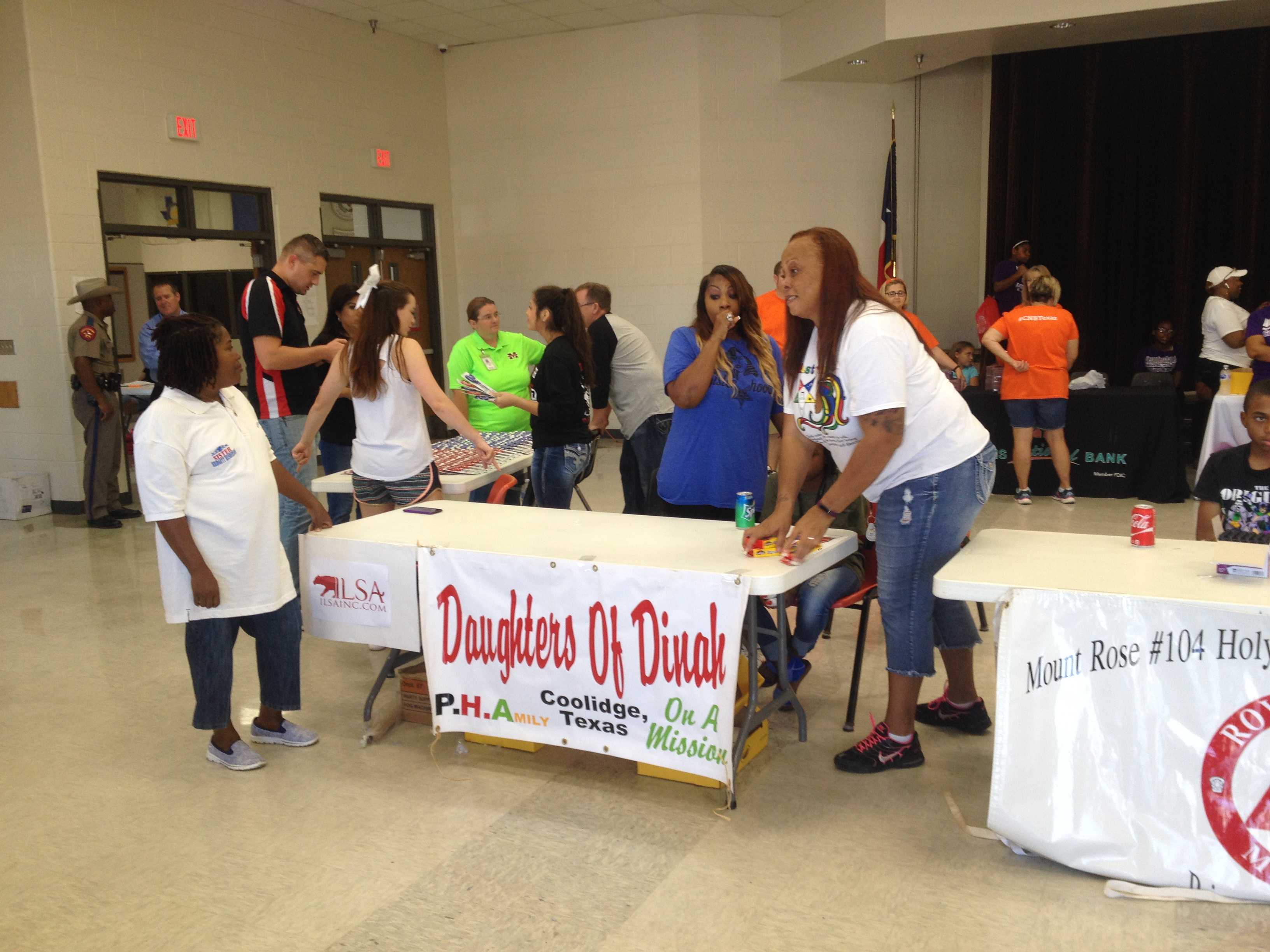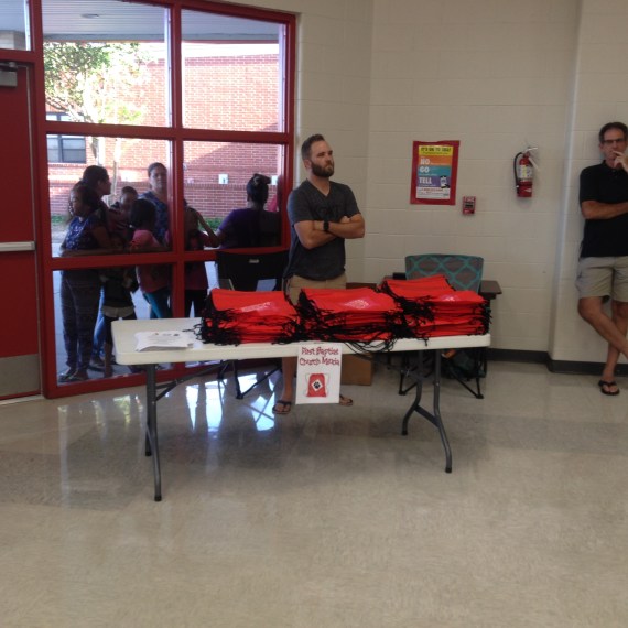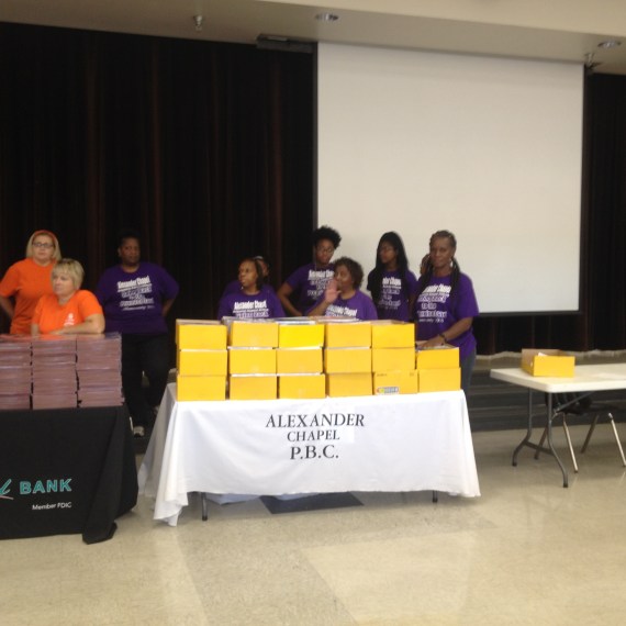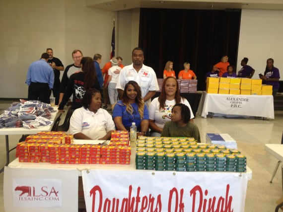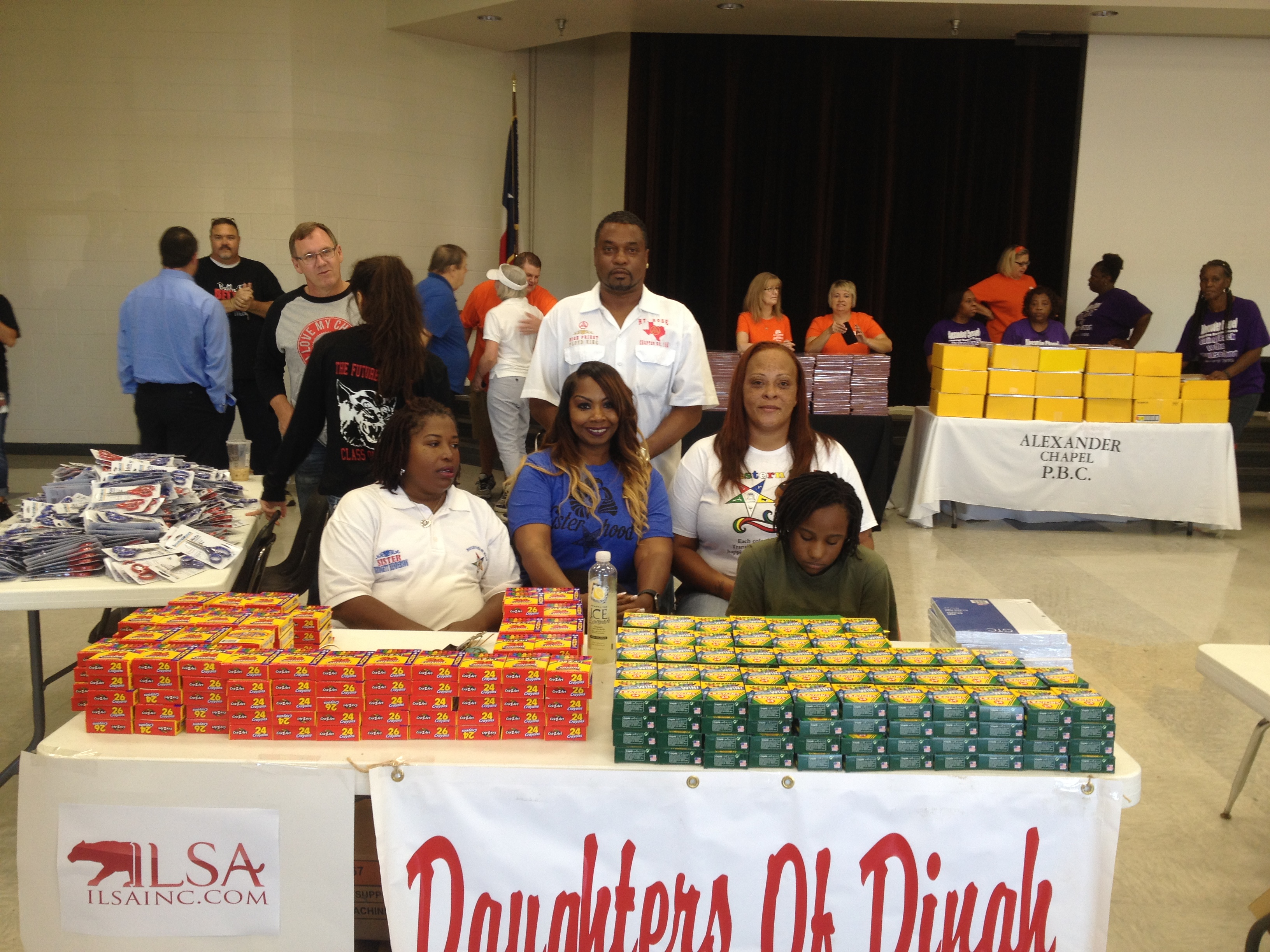 Daughters of Dinah is Handing out crayons to students. Sisters Bridgett Henderson,Vickie Brooks,and Sanja Giddings