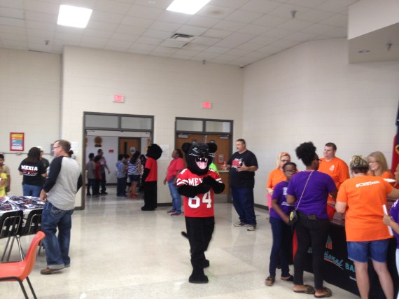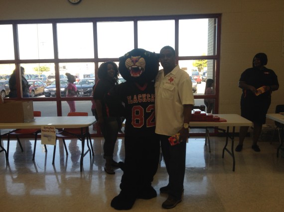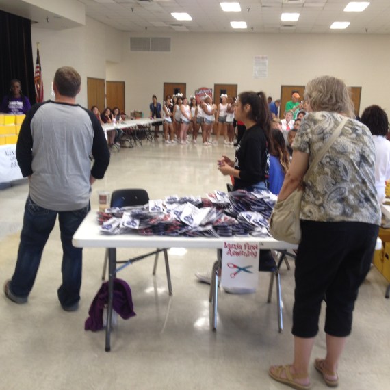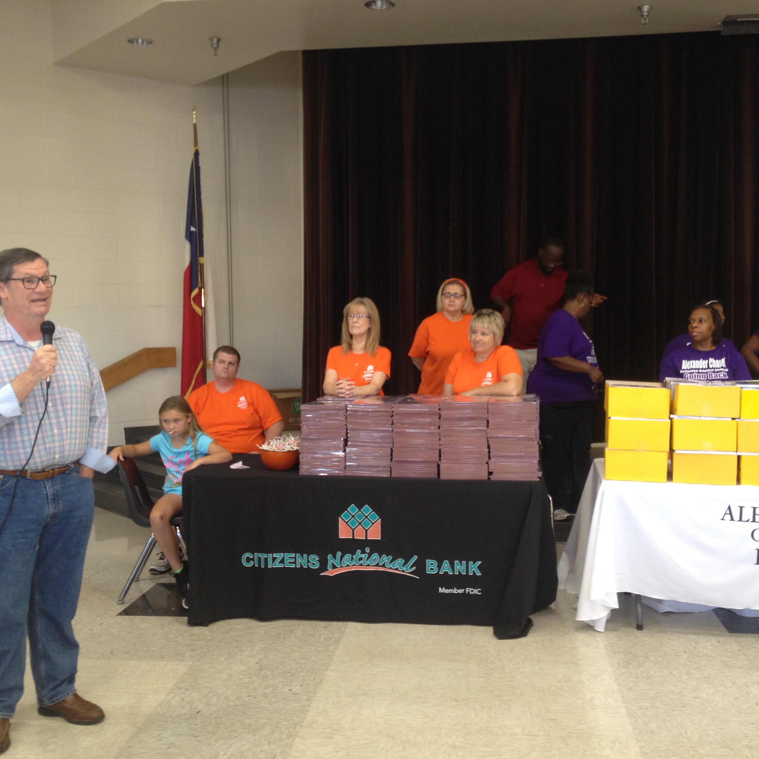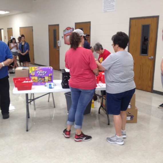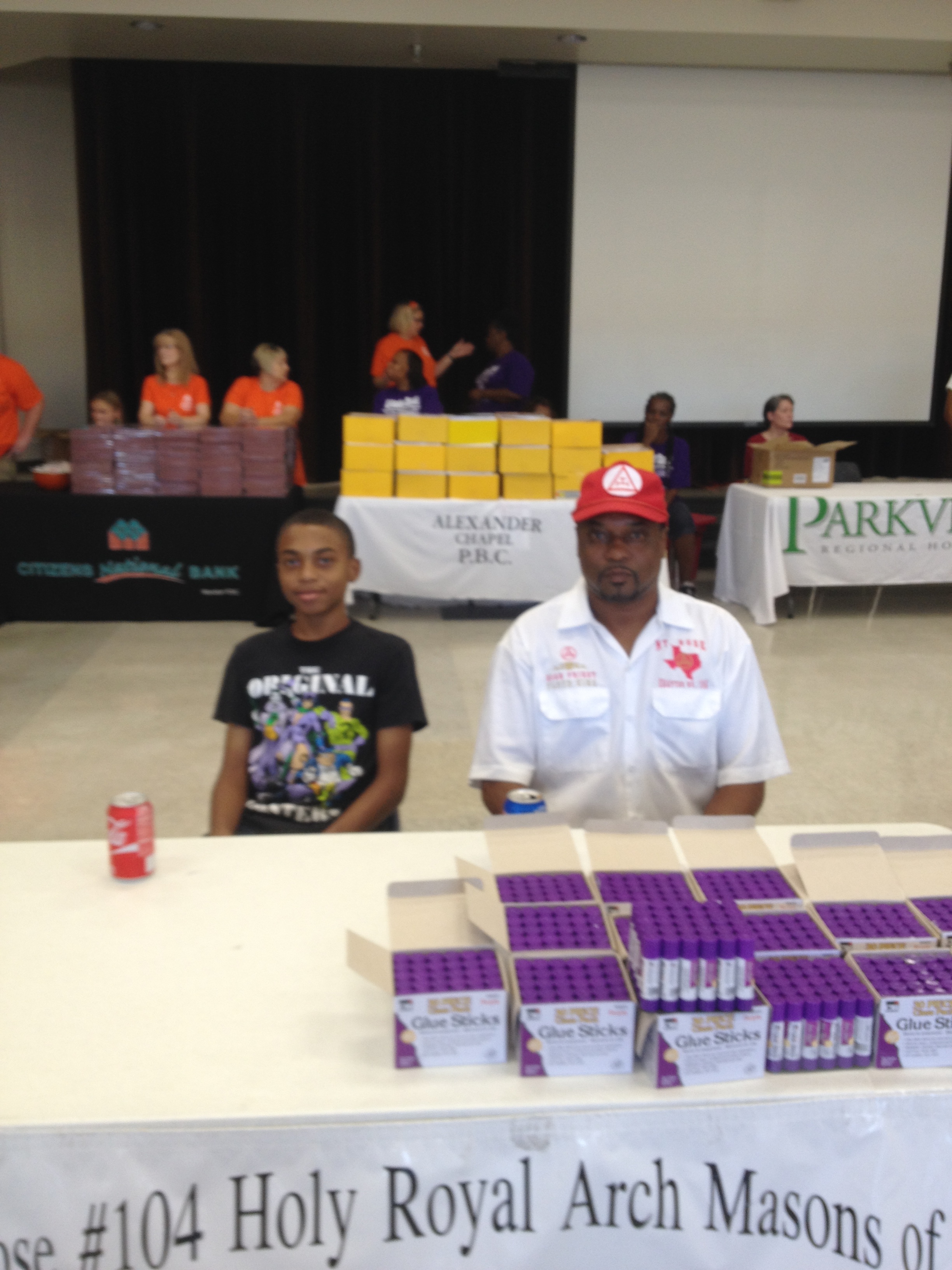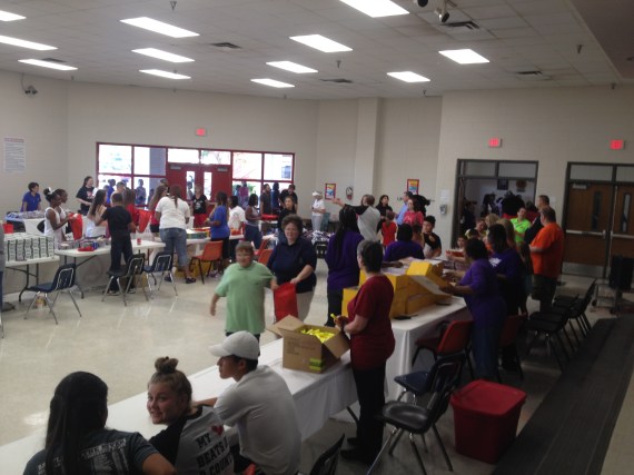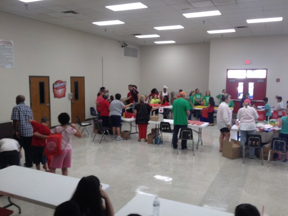 Daughters of Dinah is Handing out crayons to students. Sisters Bridgett Henderson,Vickie Brooks,and Sanja Giddings